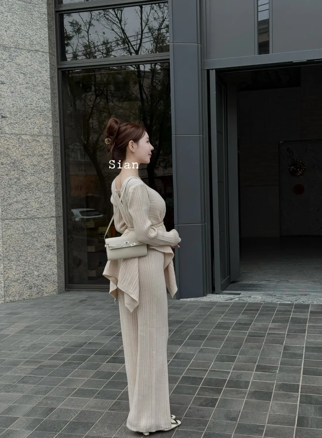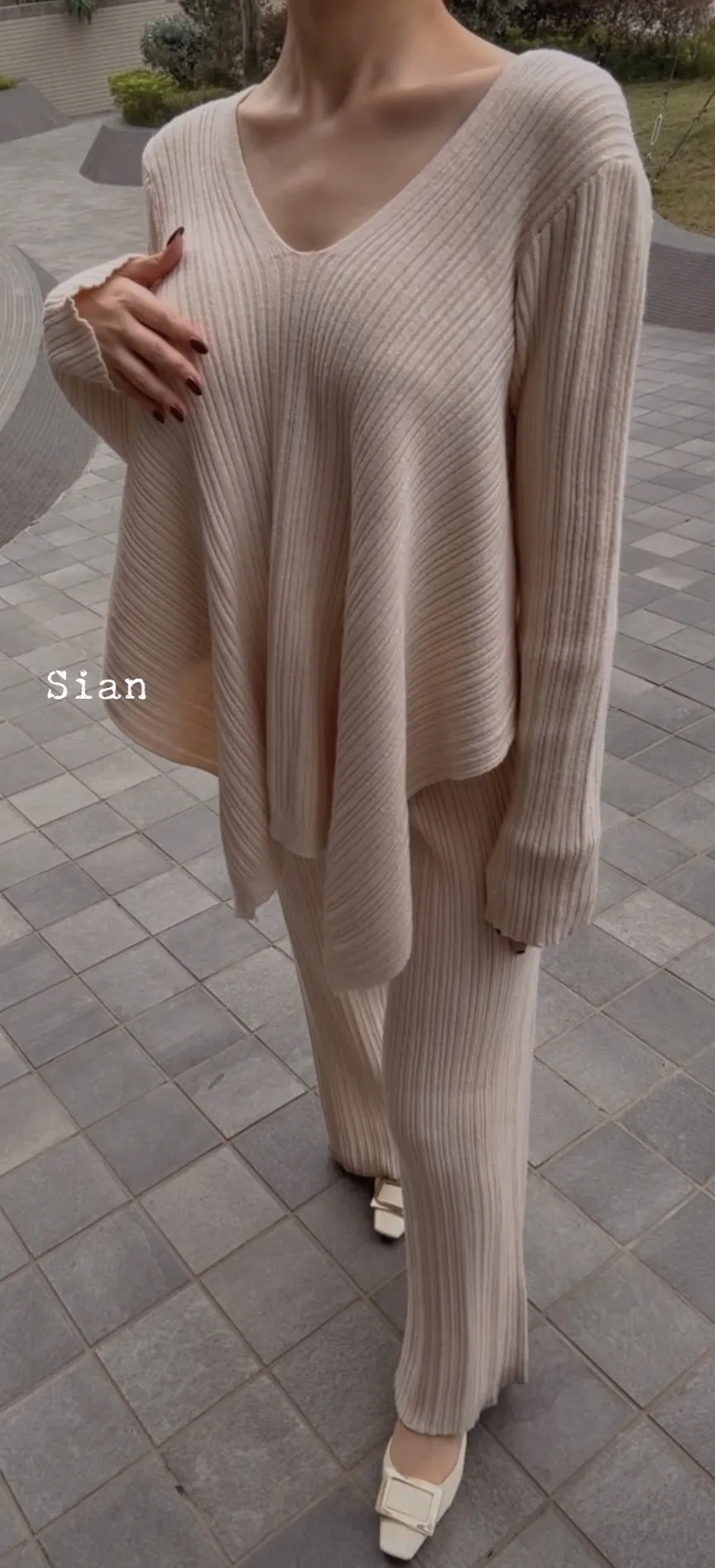 羊羔毛花瓣拉升比例長腿套裝